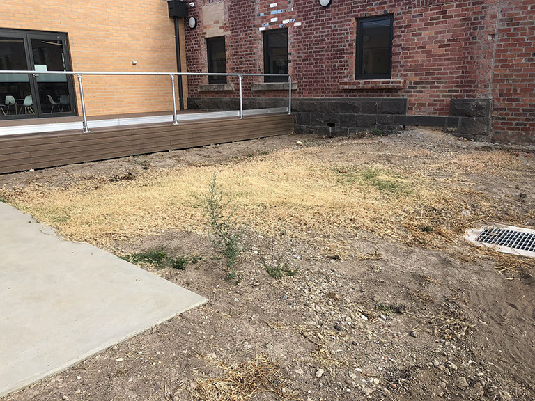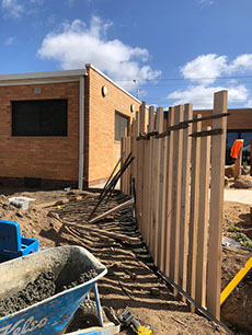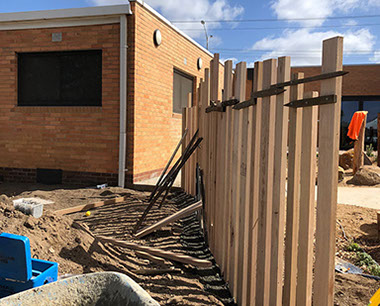 Surrounded by a see through fence giving an open look and appeal to the finished enclosed area and finished with external planting