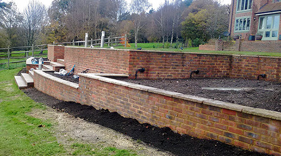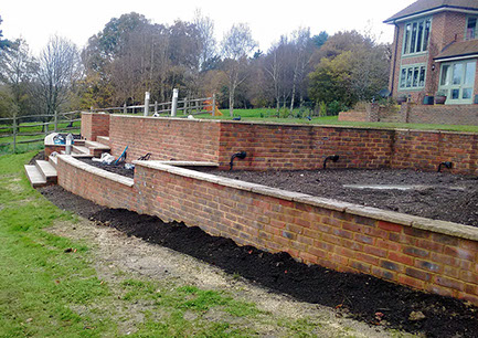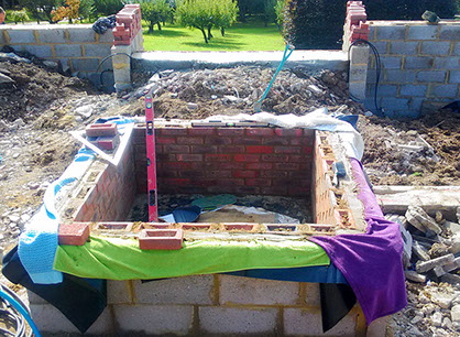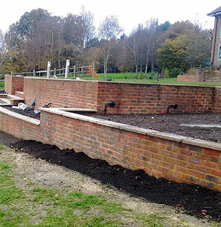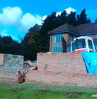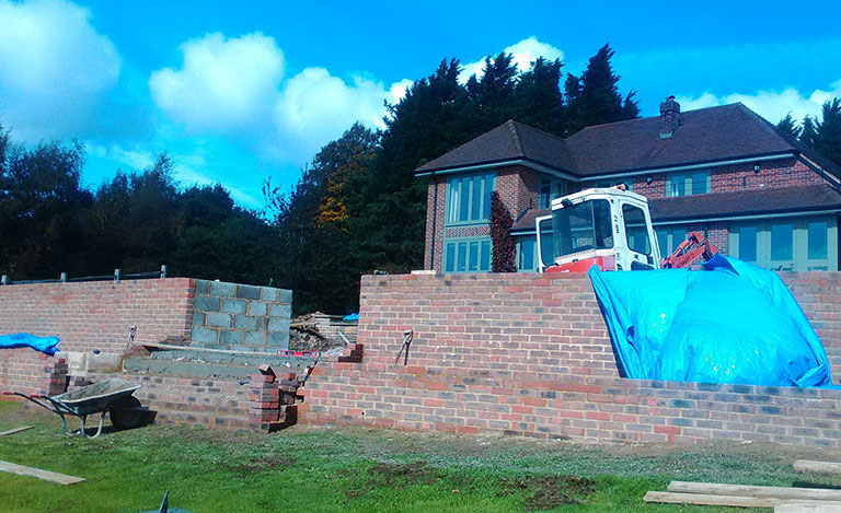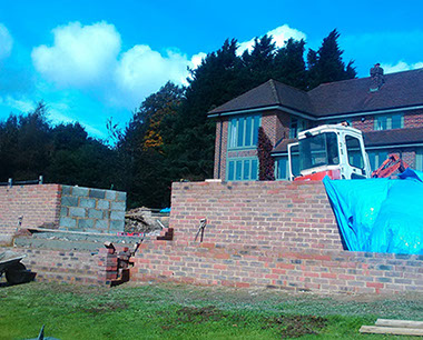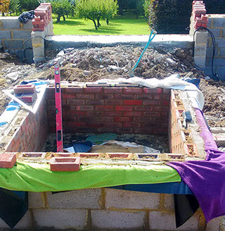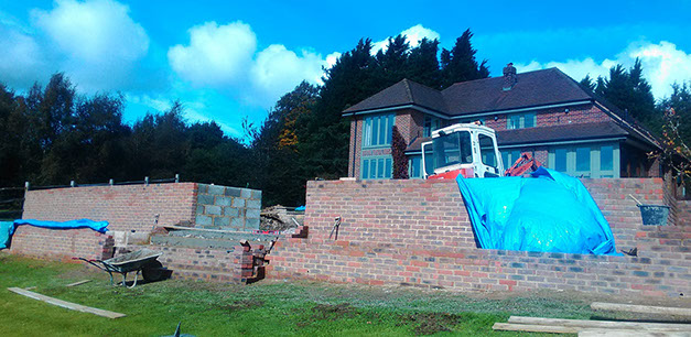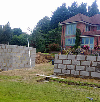 We then laid bricks to the front of the concrete block wall tied together with wall ties. The finished walls were capped