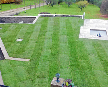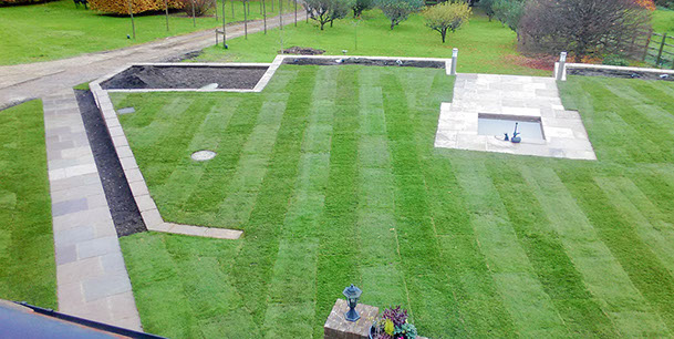 the feature pond and finished the area with turf and a Sandstone path to match.